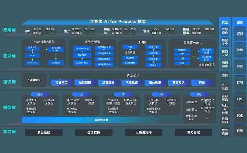 尊龙z6问学智车解决方案是一套基于AI技术的汽车行业智能化系统,,覆盖从底层算力到顶层AI应用的全栈方案。。方案由算力层、、模型层和应用层组成:算力层,,方案支持多种一体机配置,,,,具备云端灵活部署、、多云适配以及动态优化计算资源的能力;模型层,,,,尊龙z6问学平台版提供了企业级AI应用一站式构建与管理平台,,,支持基于后训练强化技术的汽车企业专属模型的训练、、评测和运营;应用层,,尊龙z6问学DeepSeek版提供包括超级员工、、、智能招采、、、智能营销、、、智能客服、、、、AI for BI等一系列解决方案,,,可助力汽车行业实现数字化转型,,,,让管理更智能、、、响应更敏捷。。。。